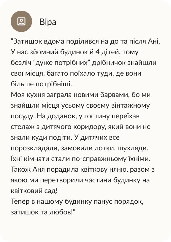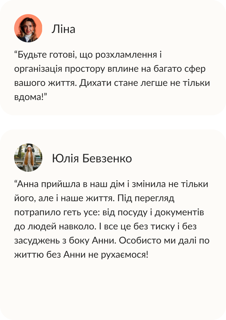Усвідомлення проблеми — перший крок до змін. Якщо дім виснажує, речі губляться, шафи переповнені, а безлад повертається навіть після прибирання — це знак, що час розхаращитися. Самостійно складно: ми відкладаємо, прокрастинуємо, а хаос тільки зростає. Дозвольте собі допомогу — спеціаліст проведе вас через цей процес легко та швидко.