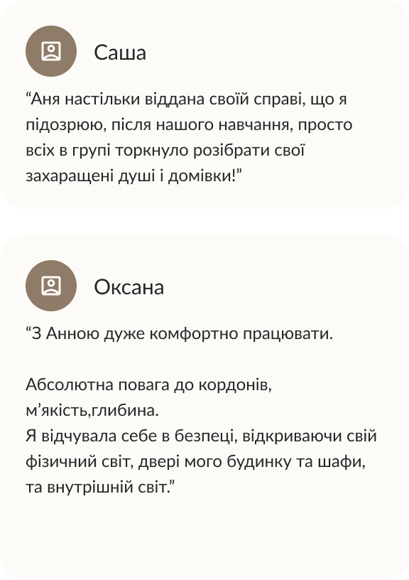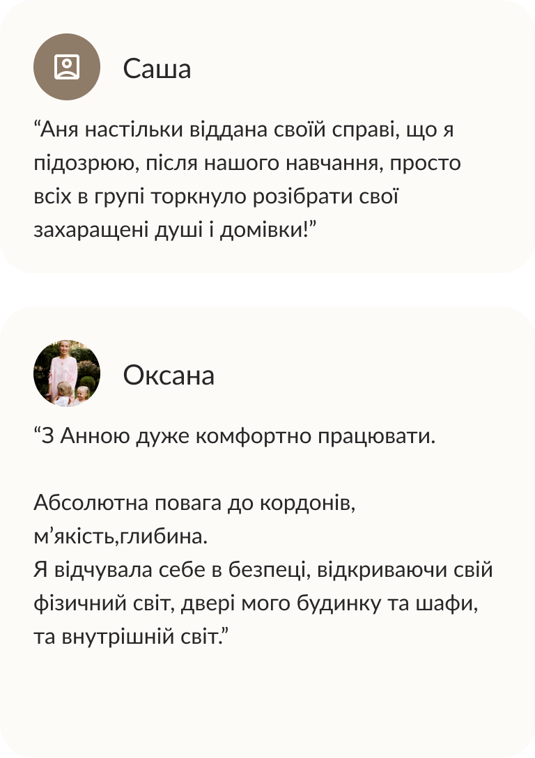 На початку може бути соромно звернутися за допомогою: може здатися, що вас почнуть оцінювати і критикувати. Насправді усе, що хоче спеціаліст — допомогти вам почуватися краще. Проте якщо страх все-таки бере своє — пропоную почати з онлайн-консультації. Я допоможу обрати вектор руху в максимально дистанційному форматі, аби зберегти вашу приватність, але й водночас націлити на результат.